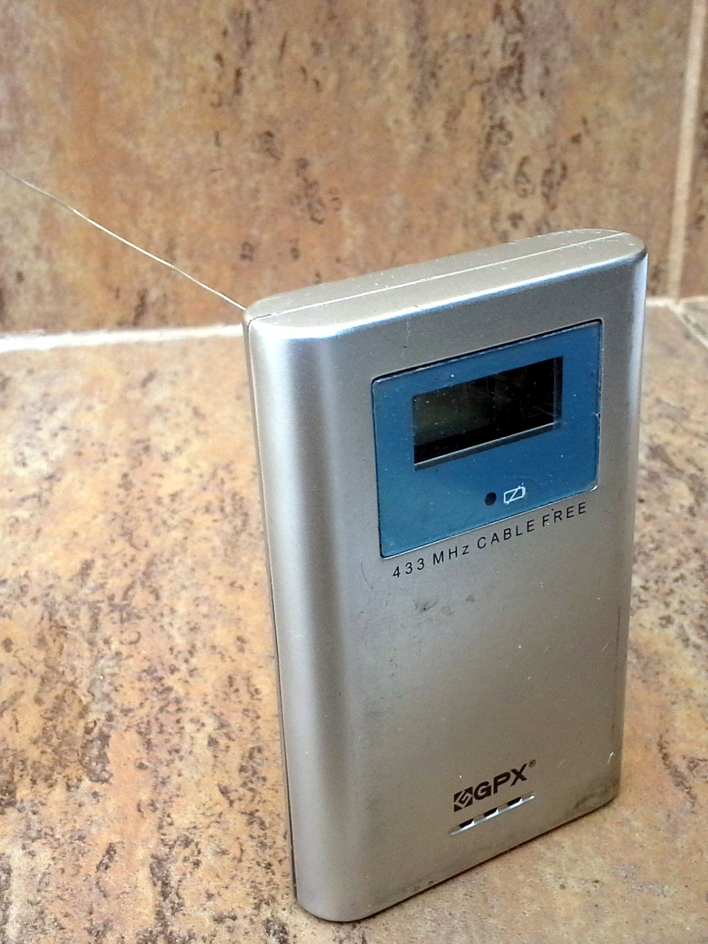 Vzal jsem co doma bylo - pozinkovaný vázací drát o průměru xx. Odpájel jsem původní drátek a připájel novou anténu. Poté do krabičky jsem vyvrtal dírku, prostrčil novou anténu, zašrouboval a hurá na testy. Dále je nutno zaizolovat díru s anténkou aby dovnitř nešla vlhkost!